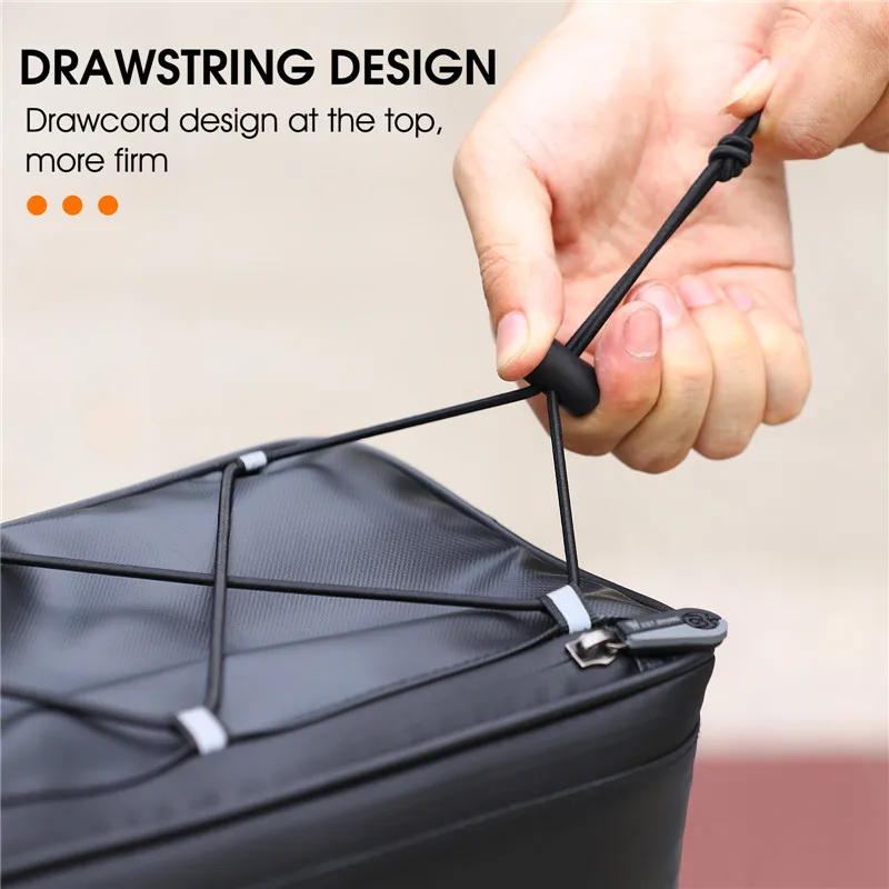 Reflective elements enhance visibility for safer night riding, while the secure mounting system ensures stability on both MTB and road bikes. Whether commuting or touring, this rear rack bag is a practical and reliable cycling companion.
